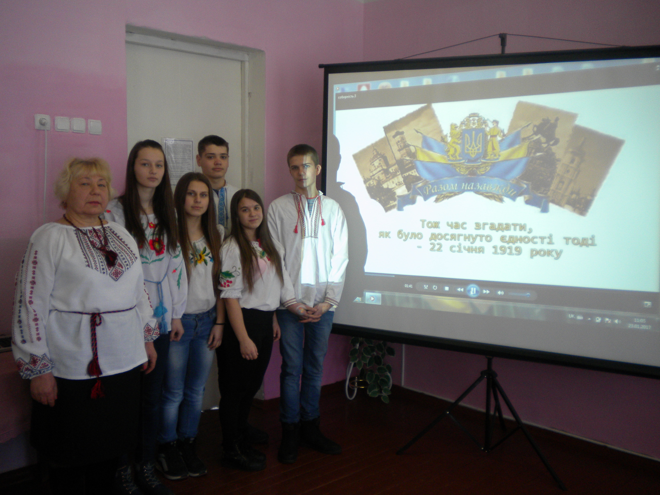 З метою поглиблення знань учнів про історію виникнення свята Соборності України, ознайомлення зі ст. 20 Конституції України, виховання патріотичних почуттів та поваги до державної атрибутики, викликання інтересу до вивчення історії України