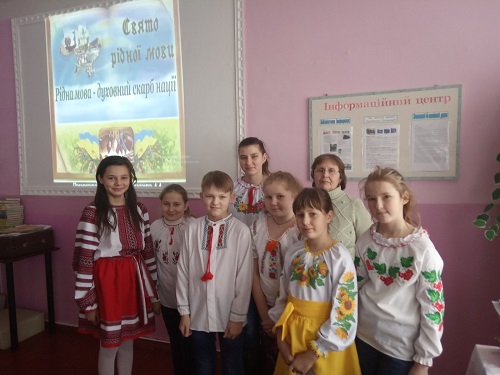 Потім учні декламували вірші про рідну мову видатних письменників України (Т.Г.Шевченка, В.Самійленко, М.Рильського, В.Сосюри, О.Підсухи та ін.)