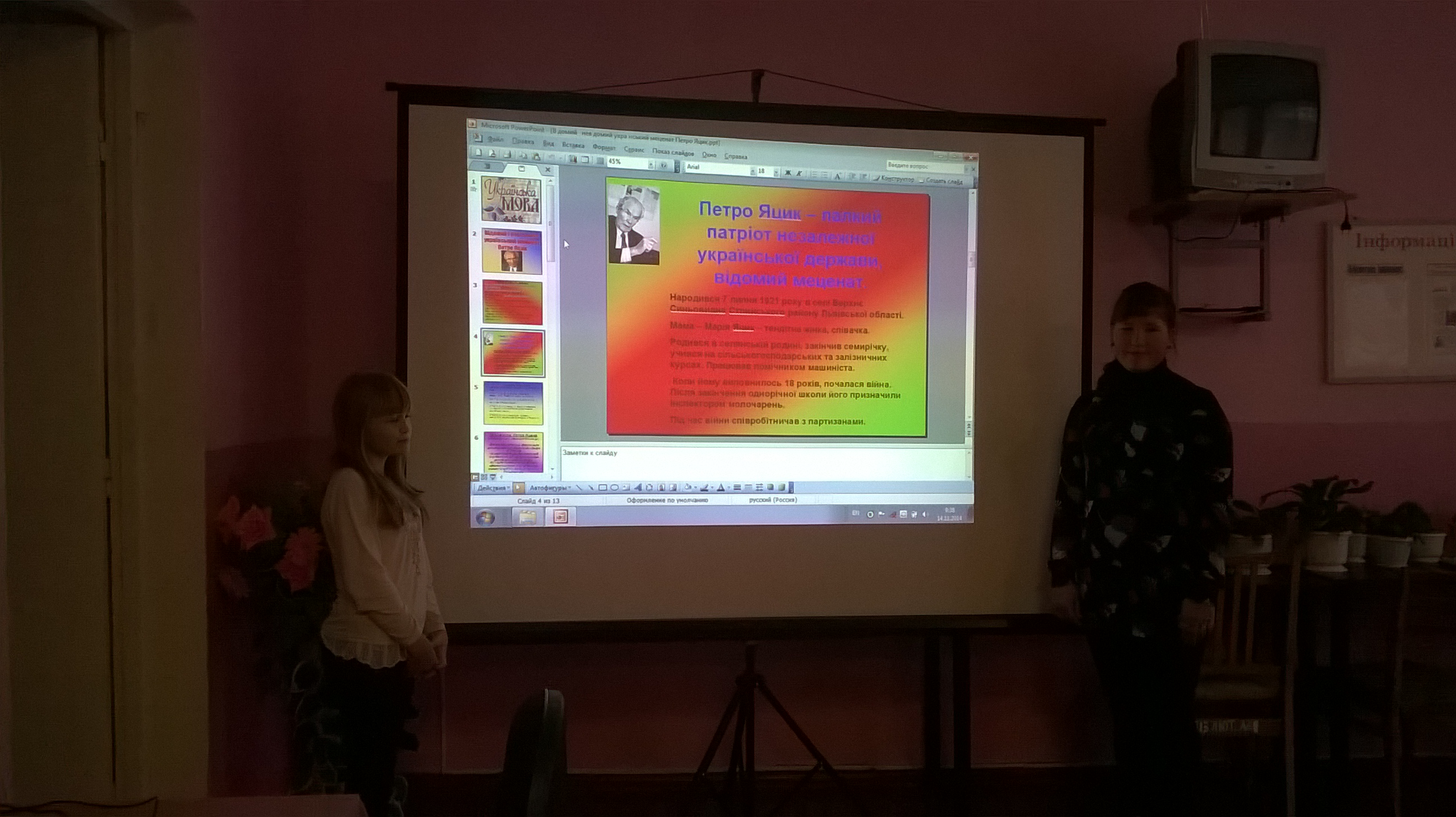 Для подальшого заохочення вивчення української мови та літератури учасники та призери першого етапу Міжнародного конкурсу ім. П. Яцика під керівництвом вчителя української мови та літератури Шеремети М. С. підготували та провели урок – презентацію