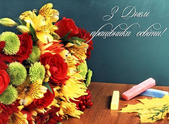 Щиро вітаємо Вас з професійним святом! Висловлюємо Вам сердечну вдячність за невтомну працю, за великий талант і покликання сіяти мудрість і знання, за любов до дітей і рідного краю.