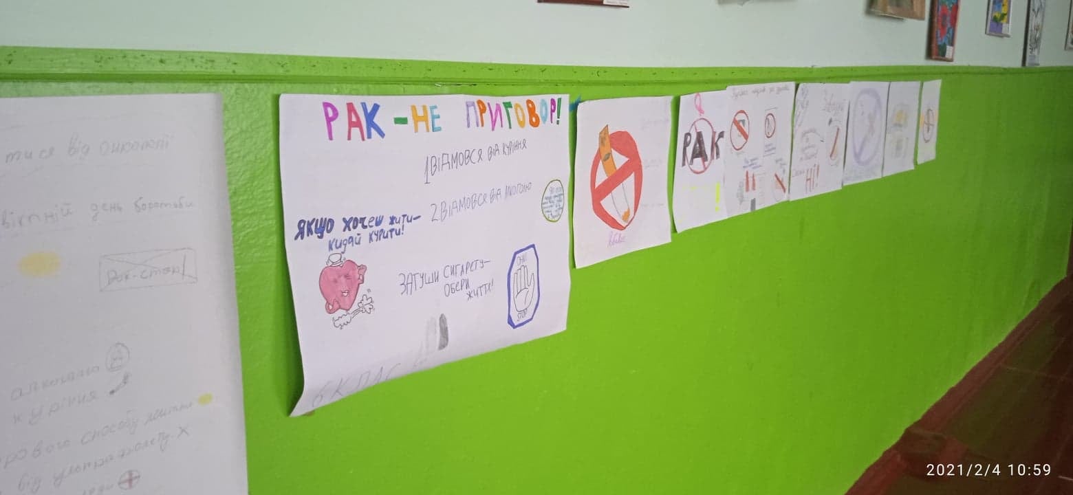 Учні 6 класу Борівського НВО у Всесвітній день боротьби проти раку приєдналися до заходів з підвищення обізнаності про рак. Вони мали можливість преглянути промо ролик про чинники,що впливають на появу онкозахворювань, взяти участь у вікторині «Молодь обирає здоровий спосіб життя». Учні школи створили плакати по даній темі. За даними ВООЗ: існує більше 100 видів раку і хвороба може розвиватися в будь-якій частині тіла. Від раку щорічно вмирають мільйони людей.Всесвітній день боротьби проти раку проголошений «Міжнародним союзом з боротьби з онкологічними захворюваннями» - Міжнародним союзом проти раку або UICC і що відзначається щорічно 4 лютого. Мета цього дня в усьому світі - це підвищення обізнаності людей про рак як один із найстрашніших і згубних захворювань нашої сучасної цивілізації. Залучаючи увагу до запобігання, виявлення та лікування цього захворювання, можна домогтися гарних результатів, а в деяких випадках і повного одужання.