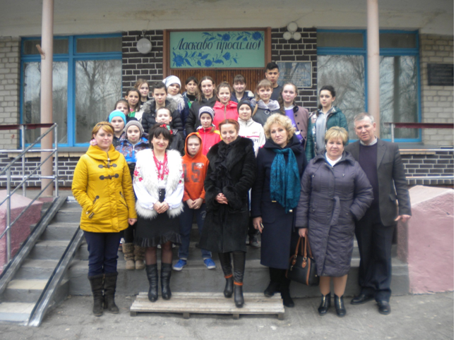 Ми запропонували їм оглянути витвори мистецтва зроблені руками наших учнів, які дарують насолоду при їх огляді, та отримати задоволення від спільної роботи під час майстер-класів з чудовими та привітними «умільцями». Цікава була екскурсія по школі, де заступник директора школи Н.М. Грама запросила гостей відвідати виставку кращих робіт учнів школи та молоді села. Тут гості побачили роботи, деякі з яких можна назвати «шедевром». Все це надзвичайно сподобалося нашим гостям. Вони отримали нагоду побачити виготовлені юними майстрами вишиванки, обереги, картини виліплені з тіста і пластиліну, дерев'яні фігурки улюблених героїв з казок, гончарні вироби й самоткані полотна, писанки й обереги. А потім майстер-клас з різними видами мистецтва, де учні школи Каменчук Діана, Світельська Наталія, Ковальчук Діана працювали наставниками разом з волонтерами гуртків Давиденко Г.А., з розпису на бересті, перукарського мистецтва Грама Н.М. і Коцюба В.С. з гончарного мистецтва. Зі слів дітей та вчителів, вони весело провели час, дізнались багато новенького та зробили власними руками «творіння»: вироби з берести та глини, та повезли свої «шедеври» додому. А ми задоволені, що можемо частинку своїх знань передати небайдужим людям, які цінують народне мистецтво. Діти активно спілкувалися, адже саме в творчій роботі знаходяться справжні друзі.